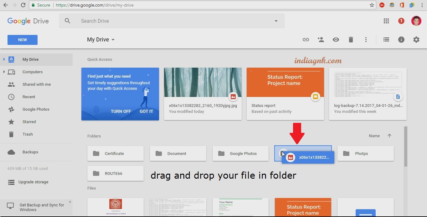 Step 4: Drag and drop your file in folder